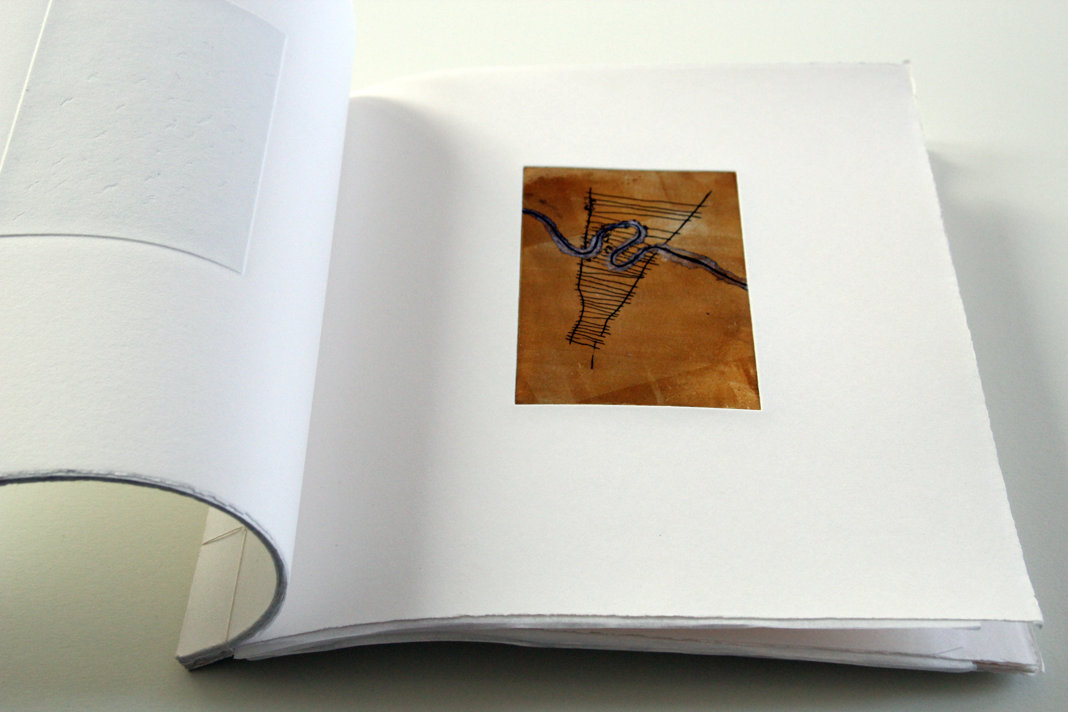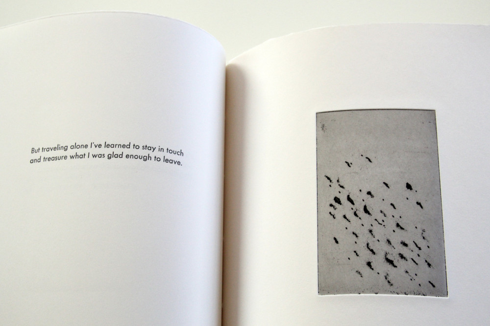 Color etching monoprints, poem is set in lead typeface, printed on white Zerkal printing paper. Asian binding.